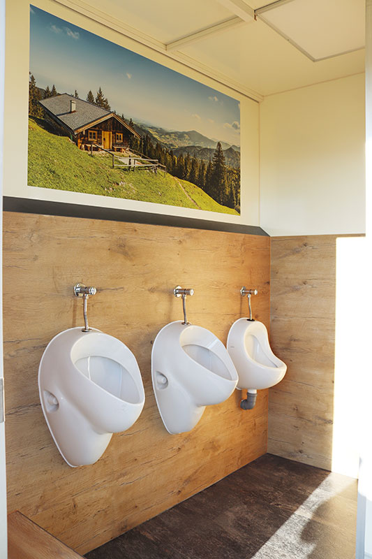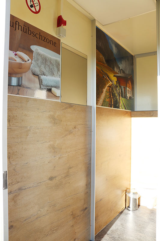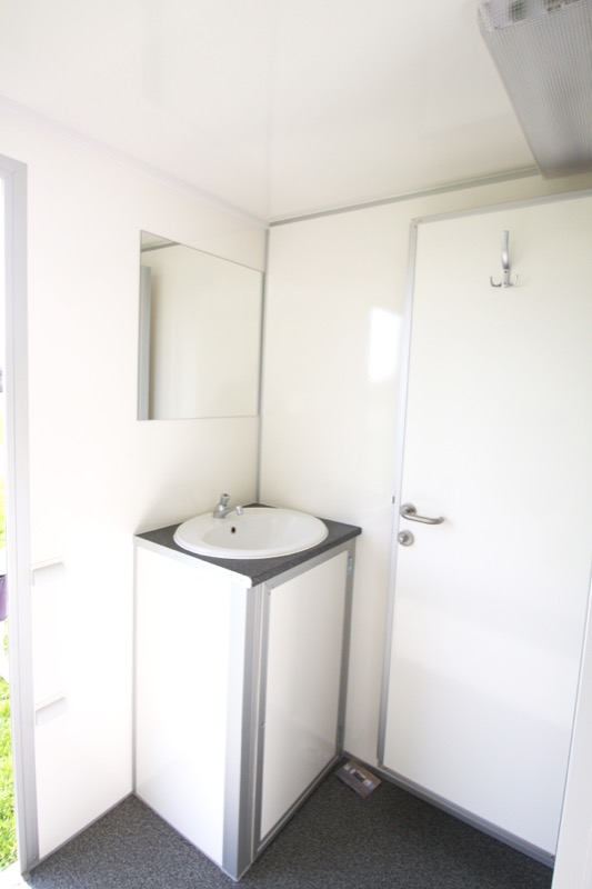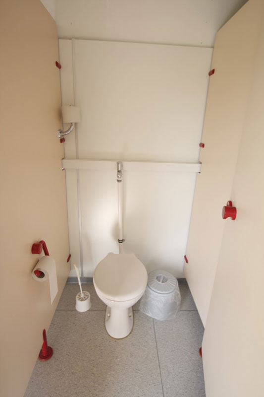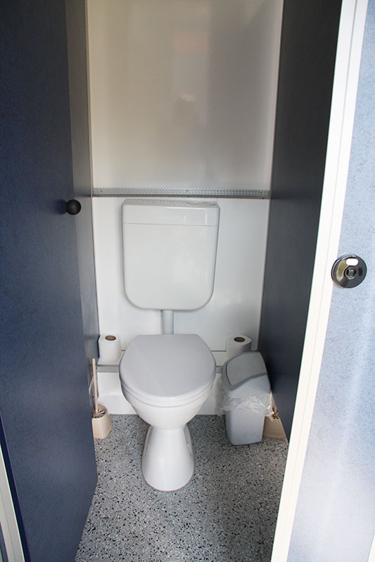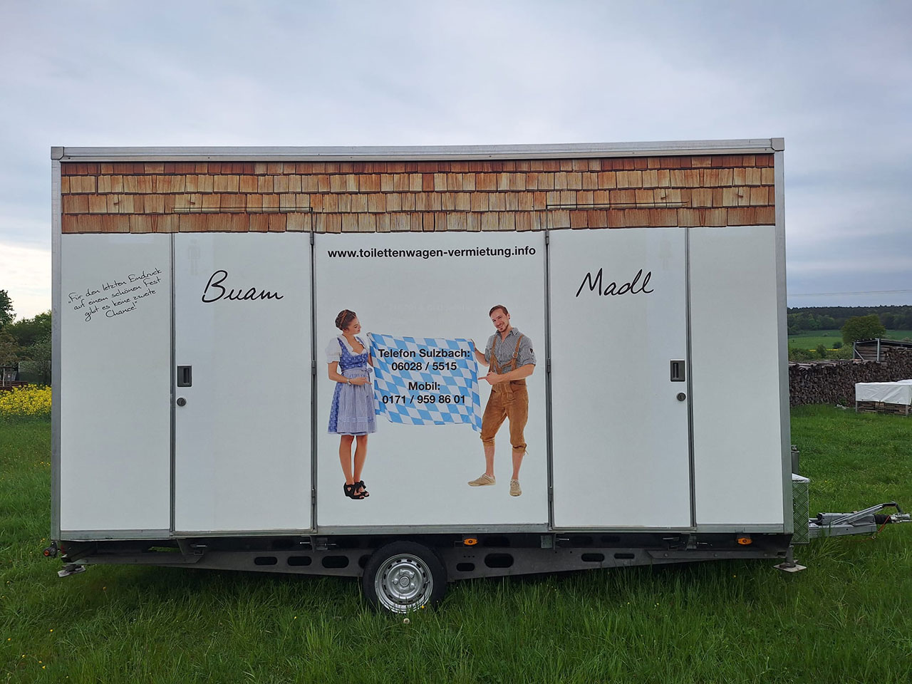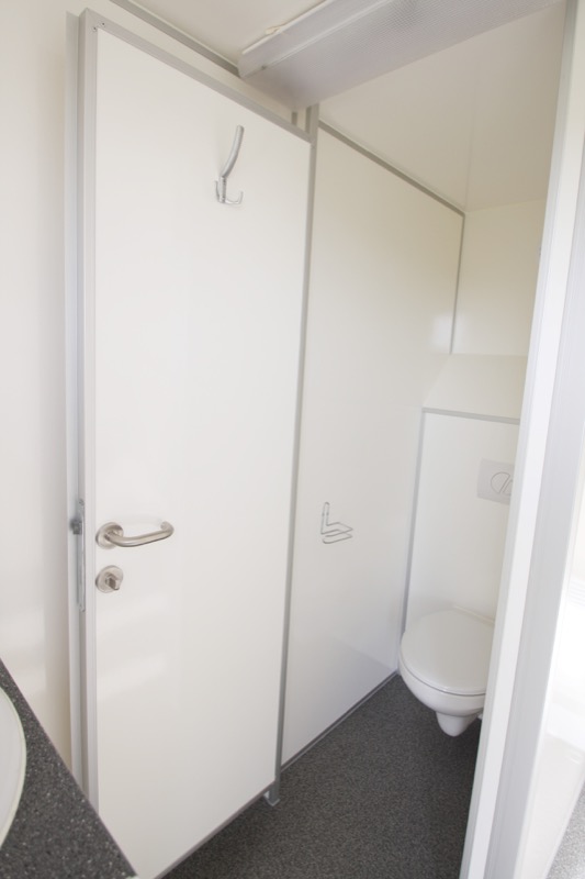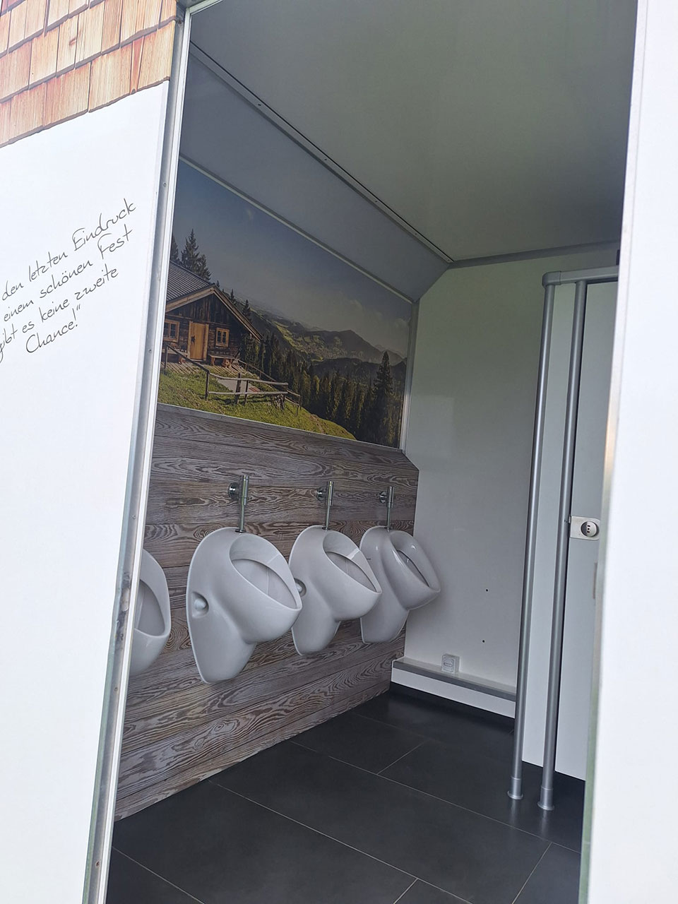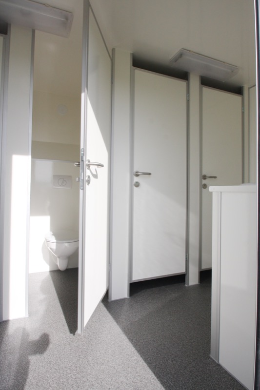 Saubere und gepflegte Toilettenwagen in unterschiedlichen Größen und ein Toilettencontainer stehen zur Verfügung.