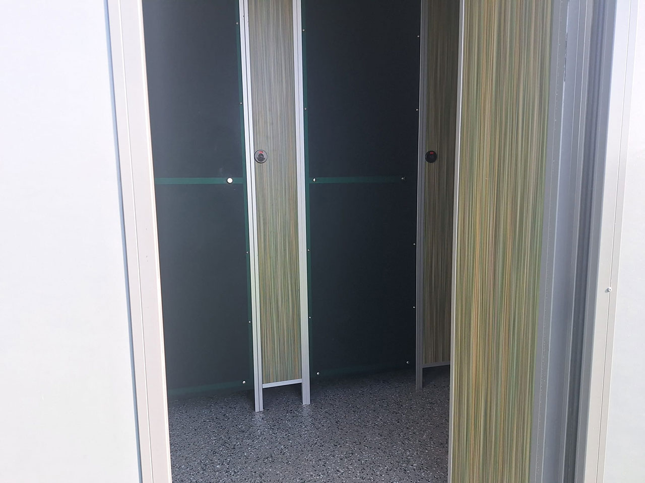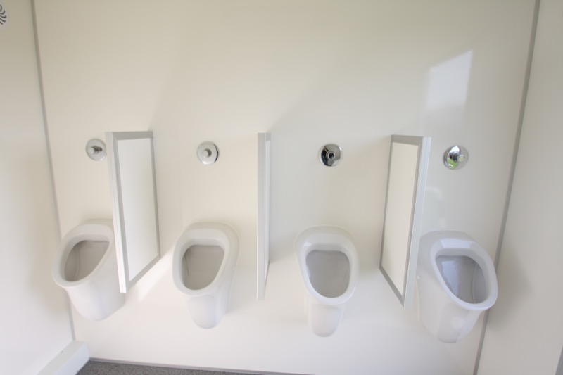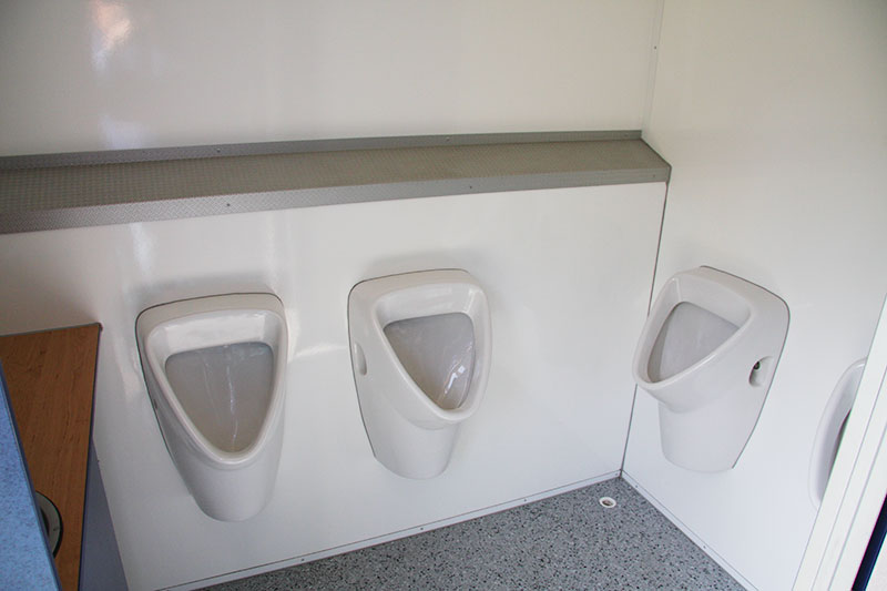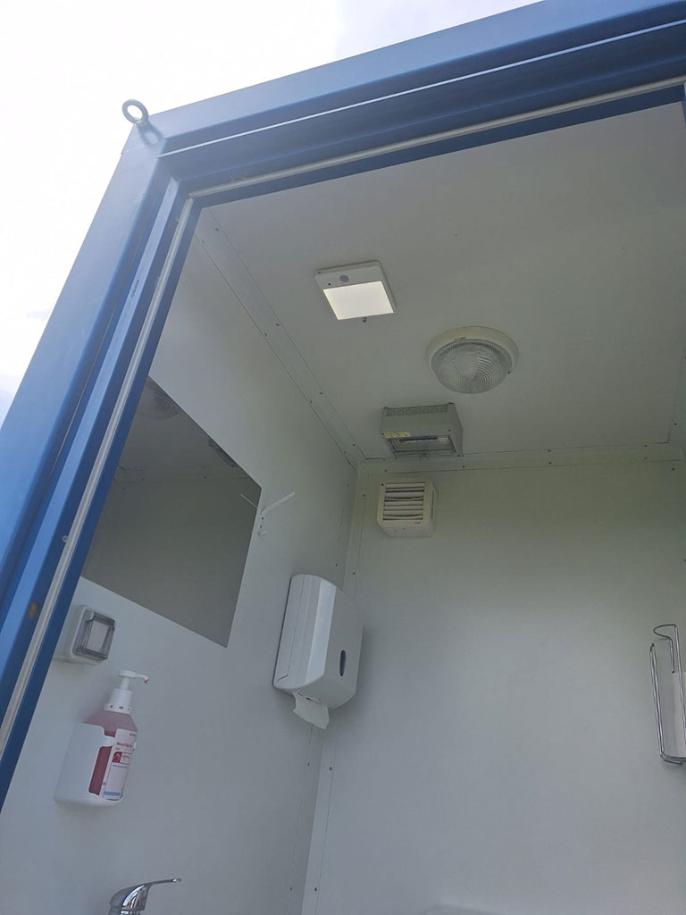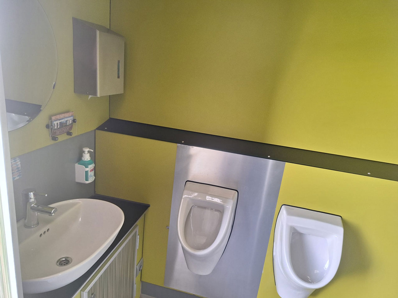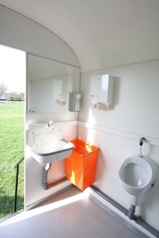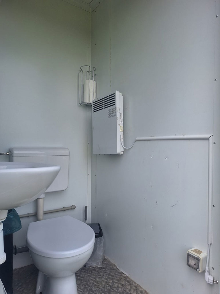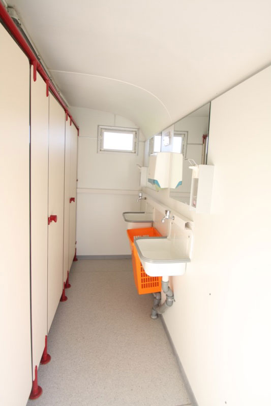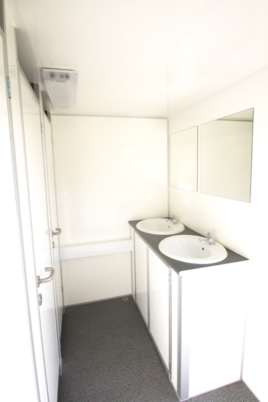 Saubere und gepflegte Toilettenwagen in unterschiedlichen Größen und ein Toilettencontainer stehen zur Verfügung.