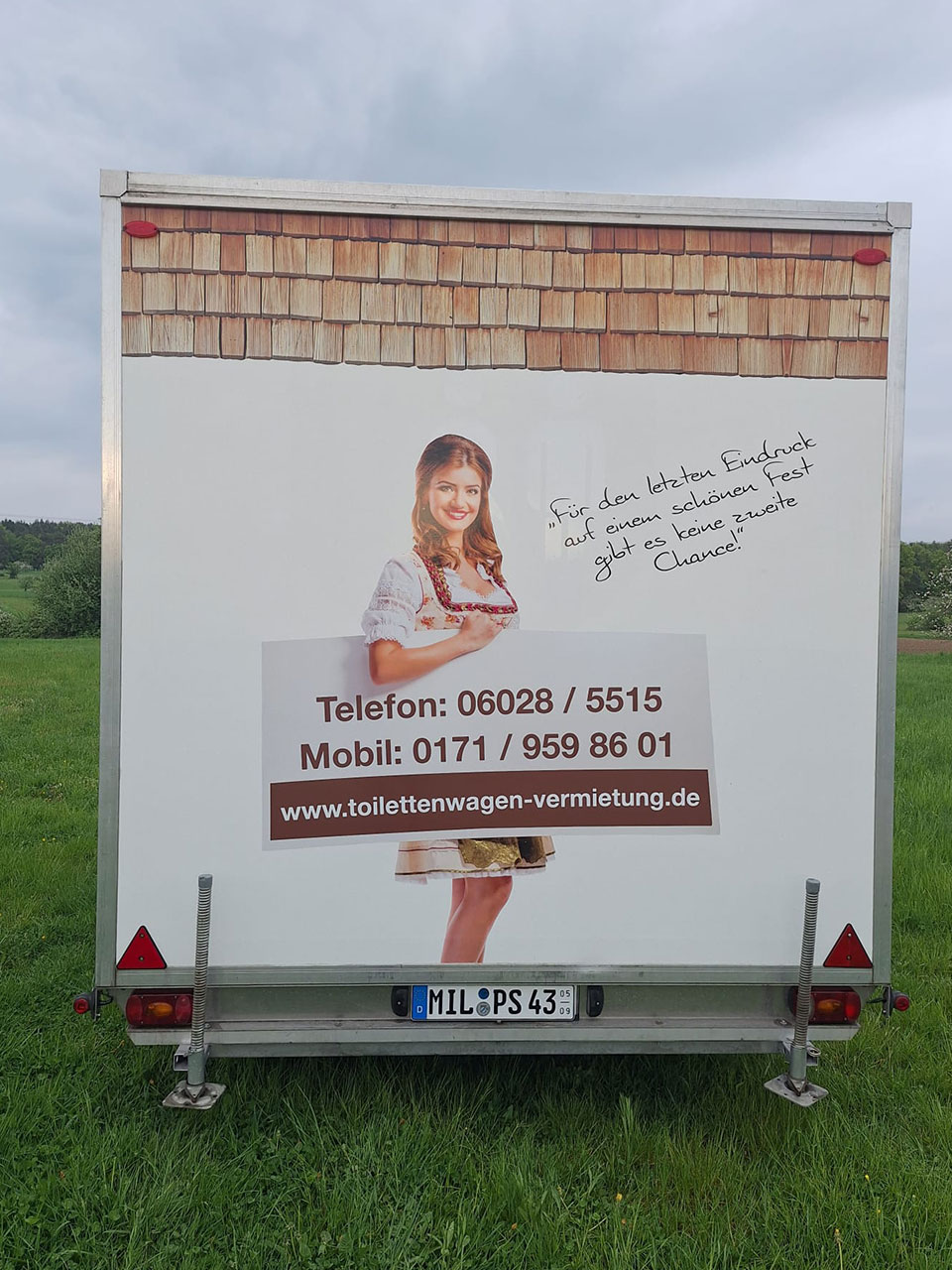 Aufgrund vermehrter Transportschäden haben wir uns dazu entschlossen seit 2020 keine Abholung der Toilettenwagen mehr anzubieten. Wir bitten um Ihr Verständnis!
